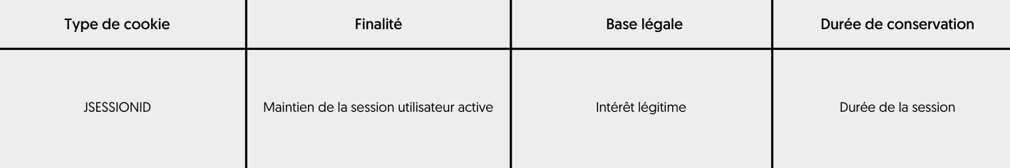 Il s’agit de cookies indispensables au bon fonctionnement du site internet, et vous permettent l’accès au site et aux différentes fonctionnalités qui le composent. Ces cookies ne peuvent être refusés car nécessaires au fonctionnement du site. Ces cookies ne requièrent pas votre consentement.