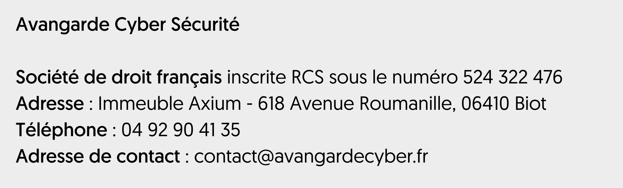 Par courrier postal : Avangarde Cyber Sécurité : PDCP– 618 avenue Roumanille – Immeuble Axium – 06410 Biot