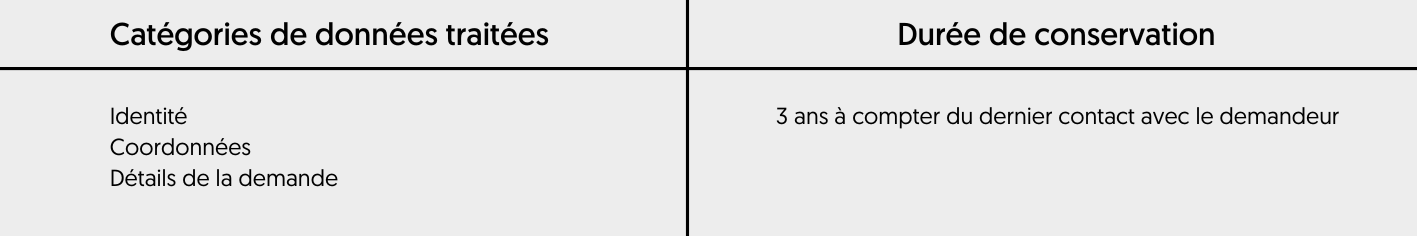 Traitement « Gestion des demandes de droits des personnes concernées »